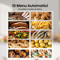 Friggitrice ad aria Hisense 7L con 1800W per cottura salutare senza olio. Design nero elegante, capiente e efficiente. Croccantezza e sapore garantiti.